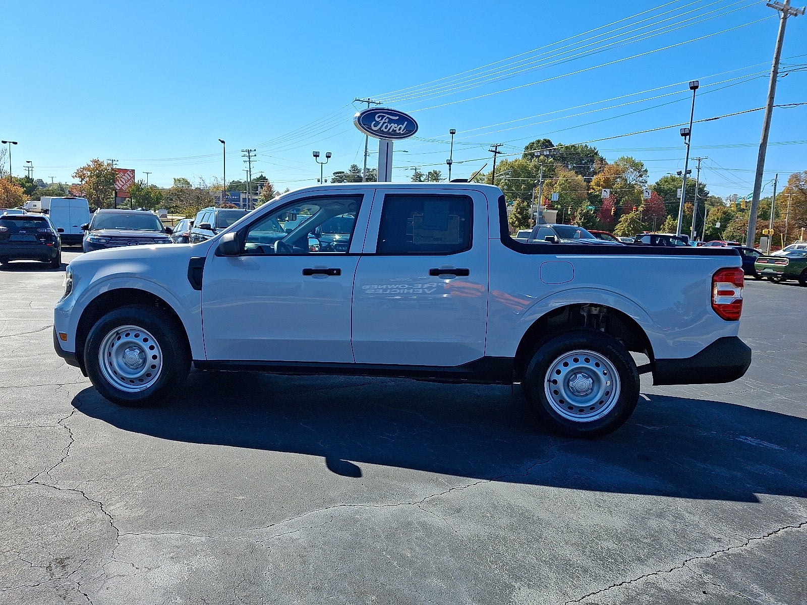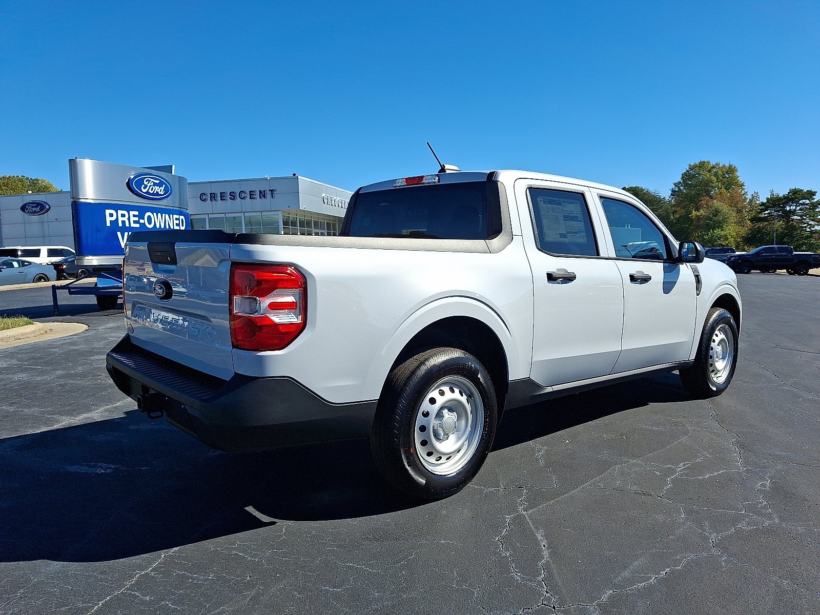 4WD / AWD, Bluetooth®, SYNC, White Glove Detailed, Rear Camera, 2.91 Axle Ratio, 2K Trailer Hitch Receiver w/4-Pin Connector, 4-Wheel Disc Brakes, 6 Speakers, ABS brakes, Air Conditioning, AM/FM radio: SiriusXM with 360L, Apple CarPlay/Android Auto, Auto High Beams, Auto High-beam Headlights, Automatic temperature control, Brake assist, Bumpers: body-color, Compass, Delay-off headlights, Driver door bin, Driver vanity mirror, Dual front impact airbags, Dual front side impact airbags, Electronic Stability Control, Emergency communication system: SYNC 4 911 Assist, Equipment Group 102A, Exterior Parking Camera Rear, First Aid Kit, Four wheel independent suspension, Front anti-roll bar, Front Bucket Seats, Front Center Armrest, Front Cloth Bucket Seats, Front reading lights, Fully automatic headlights, Illuminated entry, Knee airbag, Low tire pressure warning, Occupant sensing airbag, Outside temperature display, Overhead airbag, Overhead console, Panic alarm, Passenger door bin, Passenger vanity mirror, Power steering, Power windows, Pre-Collision Assist w/Automatic Emergency Braking, Radio data system, Radio: AM/FM Stereo w/6 Speakers, Rear anti-roll bar, Rear step bumper, Rear-View Camera, Remote keyless entry, SiriusXM w/360L, Speed control, Speed-sensing steering, Steering wheel mounted audio controls, SYNC 4 w/Enhanced Voice Recognition, Telescoping steering wheel, Tilt steering wheel, Traction control, Trip computer, Wheels: 17 Steel w/Sparkle Silver Painted Cover. 2025 Ford Maverick XL EcoBoost 2.0L I4 GTDi DOHC Turbocharged VCT 4D Crew Cab AWD Space White Metallic 22/30 City/Highway MPG Price includes: $1000 - Retail Customer Cash. Exp. 03/31/2026
