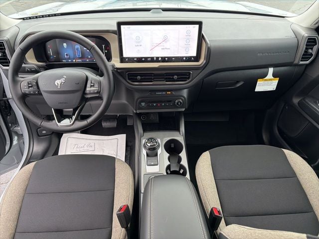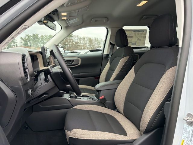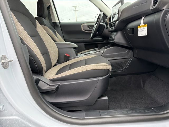 4WD / AWD, Bluetooth®, SYNC, White Glove Detailed, Rear Camera, 4-Wheel Disc Brakes, ABS brakes, Air Conditioning, AM/FM Stereo, Apple CarPlay/Android Auto, Auto High-beam Headlights, Automatic temperature control, Brake assist, Cloth with Easy-to-Clean Front Bucket Seats, Compass, Convenience Package, Delay-off headlights, Driver door bin, Driver vanity mirror, Dual front impact airbags, Dual front side impact airbags, Electronic Stability Control, Emergency communication system: SYNC 4 911 Assist, Equipment Group 200A Standard Package, Exterior Parking Camera Rear, First Aid Kit, Flood Light Adjustable Liftgate, Ford Connectivity Package (1-Year Included), Four wheel independent suspension, Front anti-roll bar, Front Bucket Seats, Front Center Armrest, Front Driver/Passenger Seat Back Map Pockets, Front reading lights, Fully automatic headlights, Heated 8-Way Power Driver's Seat, Heated door mirrors, Illuminated entry, Internet access capable: 5G Modem - Ford Connectivity Package, Knee airbag, LED Fog Lamps, Low tire pressure warning, Occupant sensing airbag, Outside temperature display, Overhead airbag, Overhead console, Panic alarm, Passenger door bin, Passenger vanity mirror, Power door mirrors, Power steering, Power windows, Premium Wrapped Steering Wheel, Rear anti-roll bar, Rear Parking Sensors, Rear reading lights, Rear seat center armrest, Rear window defroster, Rear window wiper, Remote keyless entry, Security system, SiriusXM with 360L, Speed control, Speed-sensing steering, Speed-Sensitive Wipers, Split folding rear seat, Steering wheel mounted audio controls, SYNC 4 with Enhanced Voice Recognition, Tachometer, Telescoping steering wheel, Tilt steering wheel, Traction control, Trip computer, Variably intermittent wipers, Wheels: 17 Carbonized Gray Painted Aluminum. 2026 Ford Bronco Sport Big Bend 1.5L EcoBoost 4D Sport Utility 4WD Space White Metallic 25/30 City/Highway MPG