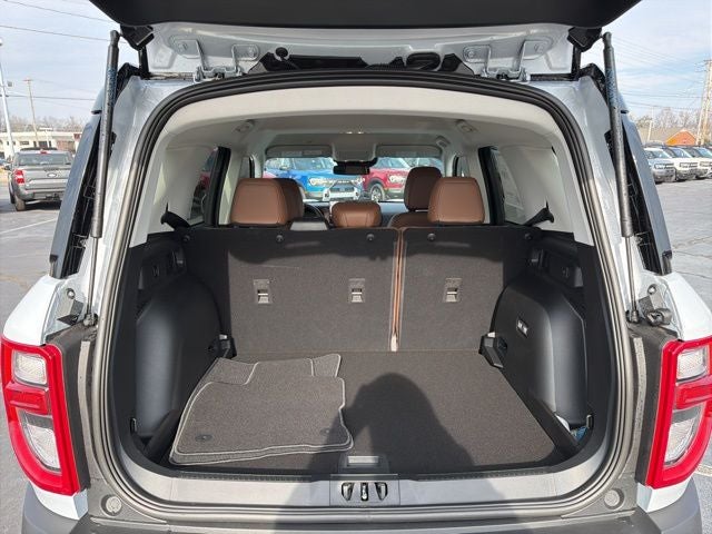 4WD / AWD, Bluetooth®, SYNC, White Glove Detailed, Rear Camera, 360-Degree Camera with Trail View, 4-Wheel Disc Brakes, ABS brakes, Air Conditioning, AM/FM Stereo, Apple CarPlay/Android Auto, Auto High-beam Headlights, Auto-dimming Rear-View mirror, Automatic temperature control, Brake assist, Compass, Connected Navigation (1-Year Included), Delay-off headlights, Driver door bin, Driver vanity mirror, Dual front impact airbags, Dual front side impact airbags, Electronic Stability Control, Emergency communication system: SYNC 4 911 Assist, Equipment Group 300A Standard Package, Exterior Parking Camera Rear, First Aid Kit, Ford Connectivity Package (1-Year Included), Four wheel independent suspension, Front anti-roll bar, Front Bucket Seats, Front Center Armrest, Front Driver/Passenger Seat Back Map Pockets, Front dual zone A/C, Front fog lights, Front Parking Sensors, Front reading lights, Fully automatic headlights, Heated door mirrors, Heated front seats, Heated steering wheel, Illuminated entry, Internet access capable: 5G Modem - Ford Connectivity Package, Knee airbag, Low tire pressure warning, Memory seat, Occupant sensing airbag, Outer Banks Tech Package+, Outside temperature display, Overhead airbag, Overhead console, Panic alarm, Passenger door bin, Passenger vanity mirror, Power door mirrors, Power driver seat, Power passenger seat, Power steering, Power windows, Premium Trimmed Heated Front Sport Contour Bucket Seats, Radio: HD w/B&O Sound System by Bang & Olufsen, Rear anti-roll bar, Rear Parking Sensors, Rear reading lights, Rear seat center armrest, Rear window defroster, Rear window wiper, Remote keyless entry, Reverse Brake Assist, Security system, SiriusXM with 360L, Speed control, Speed-sensing steering, Speed-Sensitive Wipers, Split folding rear seat, Steering wheel mounted audio controls, SYNC 4 with Enhanced Voice Recognition, Tachometer, Telescoping steering wheel, Tilt steering wheel, Traction control, Trip computer, Variably intermittent wipers, Wheels: 18 Ebony Black. 2026 Ford Bronco Sport Outer Banks 1.5L EcoBoost 4D Sport Utility 4WD Space White Metallic 25/30 City/Highway MPG