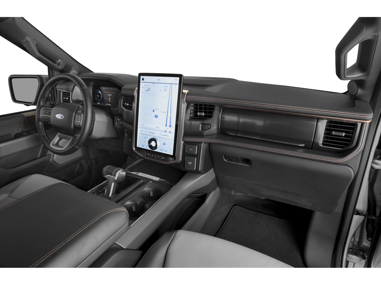 Leather, Navigation, Bedliner, 4WD / AWD, Extended Warranty Available, Bluetooth®, SYNC, White Glove Detailed, Rear Camera, 4-Wheel Disc Brakes, ABS brakes, Active Park Assist 2.0, Adjustable pedals, Air Conditioning, Alloy wheels, AM/FM radio: SiriusXM with 360L, Auto High-beam Headlights, Auto-dimming Rear-View mirror, Automatic temperature control, BlueCruise, Brake assist, Bumpers: body-color, Compass, Delay-off headlights, Driver door bin, Driver vanity mirror, Dual front impact airbags, Dual front side impact airbags, Electronic Stability Control, Emergency communication system: SYNC 4 911 Assist, Equipment Group 510A Standard, Ford Co-Pilot360 Active 2.0, Forward Sensing System, Four wheel independent suspension, Front anti-roll bar, Front Bucket Seats, Front Center Armrest, Front dual zone A/C, Front License Plate Bracket, Front reading lights, Fully automatic headlights, Heated door mirrors, Illuminated entry, Illuminated running boards, Knee airbag, Leather-Trimmed Heated & Ventilated Seats, Low tire pressure warning, Navigation system: Connected Navigation (3-year trial), Occupant sensing airbag, Outside temperature display, Overhead airbag, Overhead console, Panic alarm, Passenger door bin, Passenger vanity mirror, Power door mirrors, Power driver seat, Power steering, Power windows, Radio data system, Radio: B&O Sound System by Bang & Olufsen, Rear anti-roll bar, Rear reading lights, Rear step bumper, Rear window defroster, Remote keyless entry, Security system, Speed control, Speed-sensing steering, Split folding rear seat, Steering wheel mounted audio controls, SYNC 4A w/Enhanced Voice Recognition, Telescoping steering wheel, Tilt steering wheel, Tough Bed Spray-In Bedliner, Traction control, Tray Style Floor Liner, Trip computer, Turn signal indicator mirrors, Variably intermittent wipers, Wheels: 20 Alloy Dark Carbonized Gray.